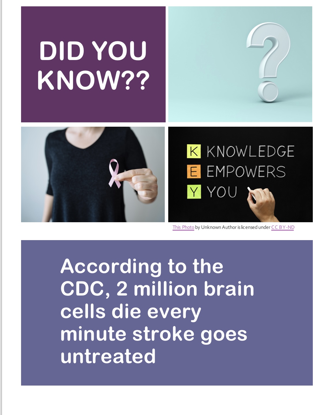 T- Time is brain cells! If you or a loved one experiences any of these signs, please call for help.